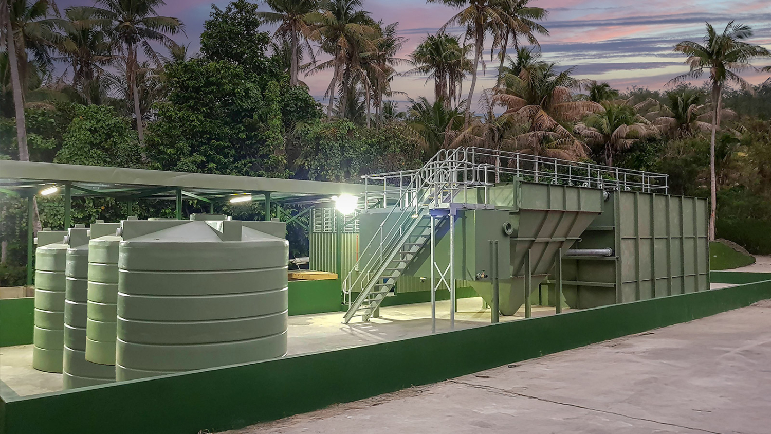 Hydroflux design and built two Roadtrain® Decentralised Sewage Treatment Solutions which were located in two different areas of the Island. Each system treats 80,000 litres per day of wastewater generated from the resort and associated kitchens. The high quality treated effluent is partially reused for irrigation with the balance safely released to the environment.