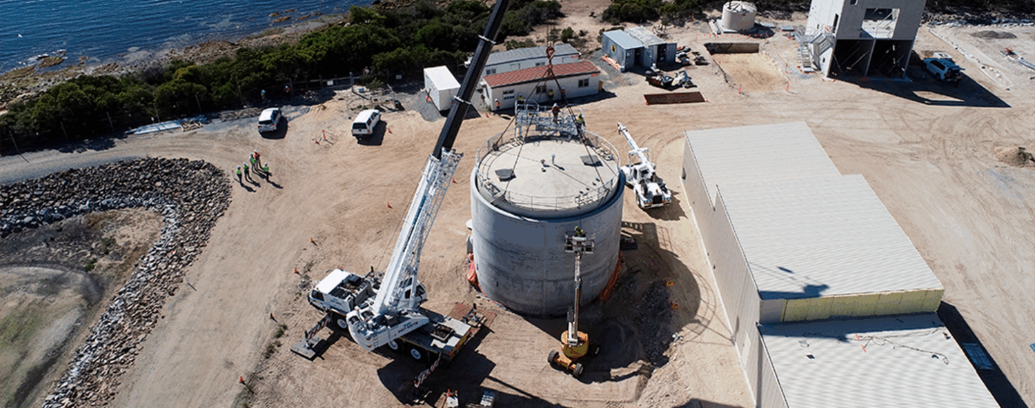 New 9.8M BioCap® Digester Cover lifted into place for the Port Lincoln WWTP